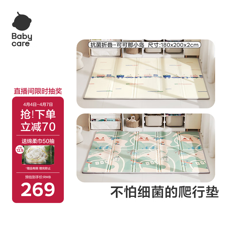 babycare抗菌XPE折叠爬行垫宝宝爬爬垫婴儿童地垫-可可那小岛180*200*2cm