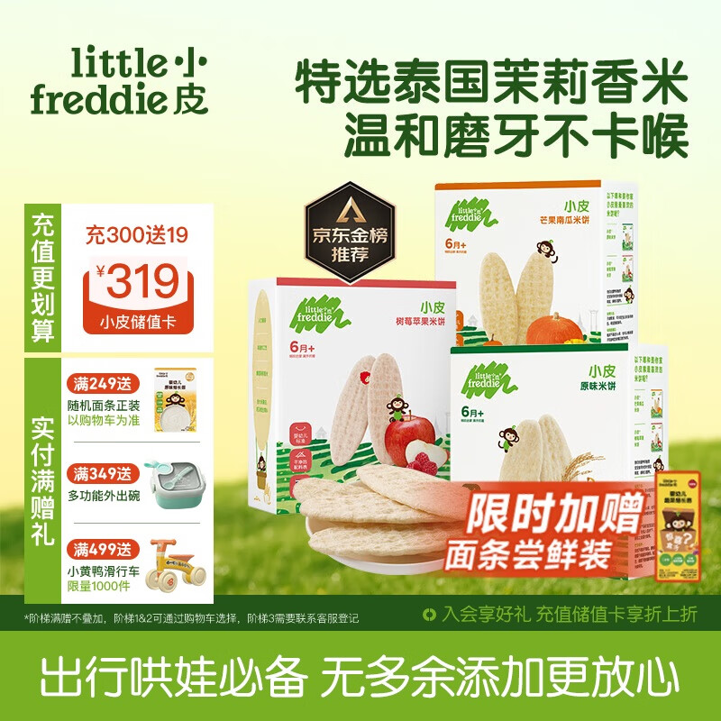 小皮(Little Freddie)婴儿磨牙米饼三口味婴儿宝宝零食米饼零添加饼干48g*3盒6个月以上