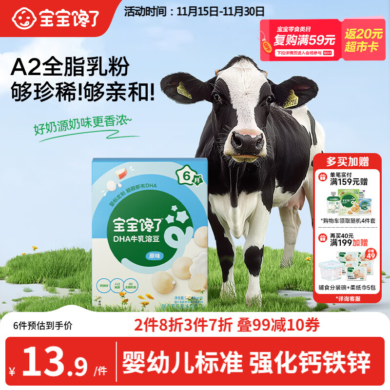 宝宝馋了婴幼儿DHA牛乳溶豆原味宝宝零食无添加白砂糖18g 6个月以上