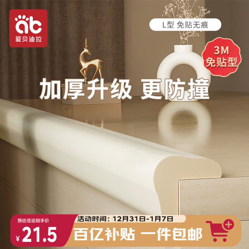 爱贝迪拉(AIBEDILA)防撞条加厚免贴婴儿家用墙角桌角防撞护角安全防护条加宽L型 4米