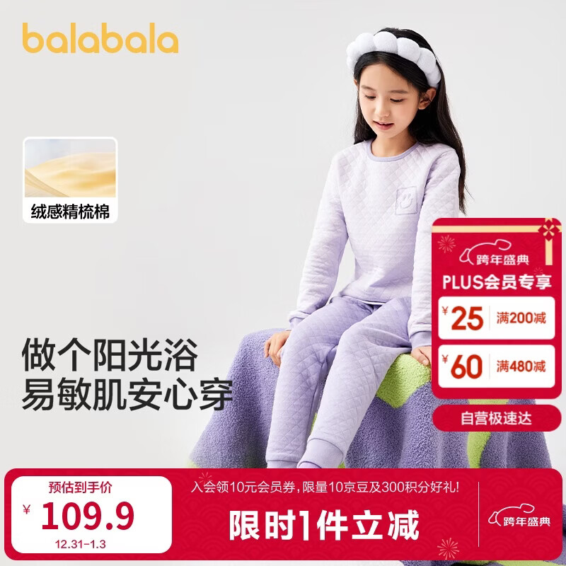 巴拉巴拉balaOne女童内衣套装儿童2件套童装2025秋冬夹棉保暖209425169001