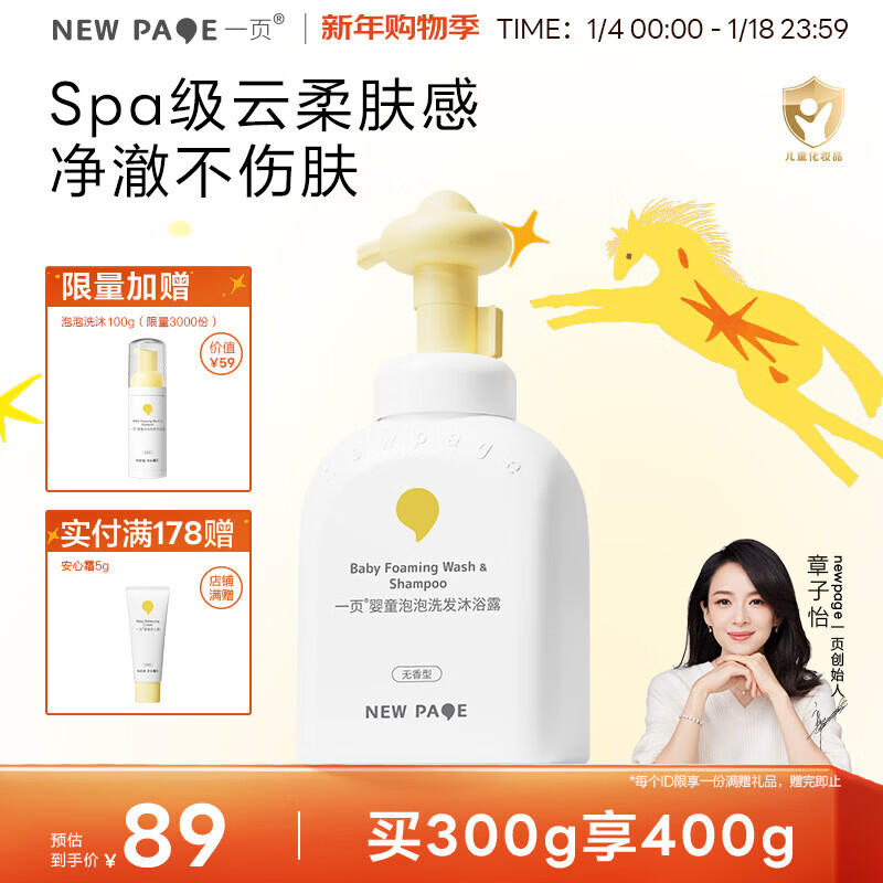 一页婴童泡泡洗发沐浴露二合一300g婴儿宝宝洗发水儿童洗发水沐浴露