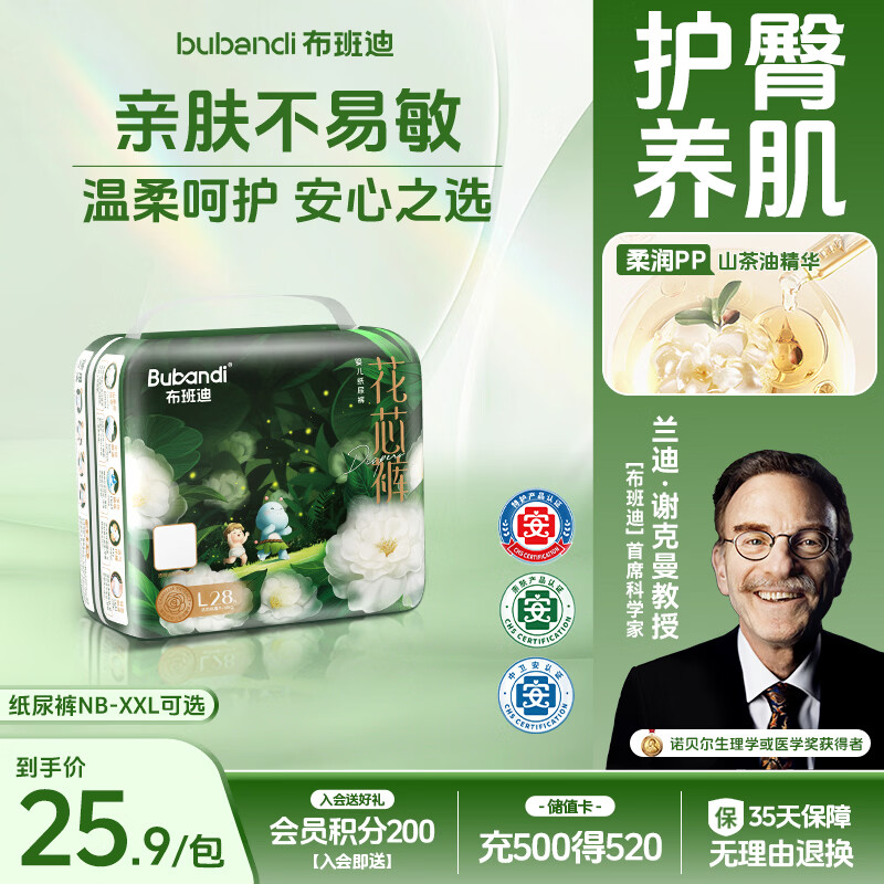 布班迪山茶花花芯裤纸尿裤L28片超薄透气男女宝通用尿不湿
