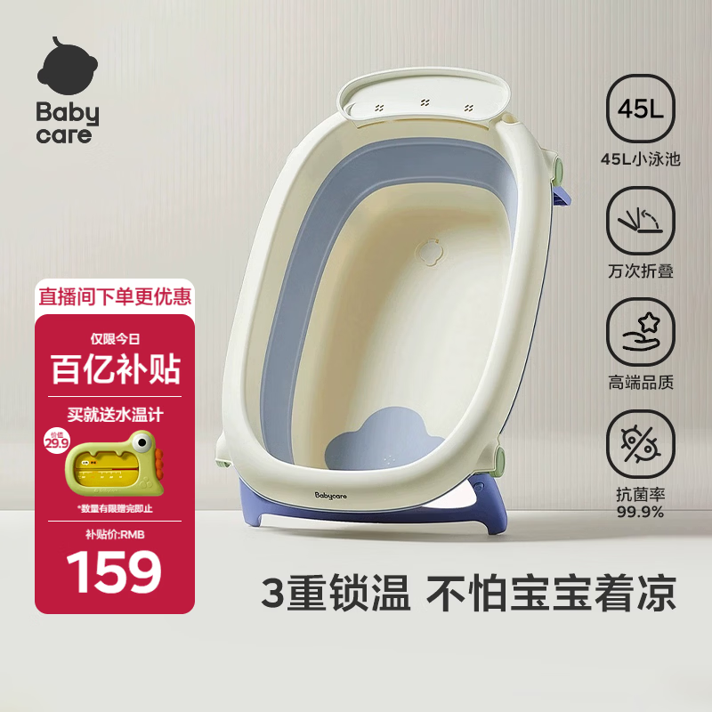 babycare婴儿洗澡盆坐浴盆洗澡神器可折叠浴盆游泳浴盆 洗澡桶单盆 冰川蓝