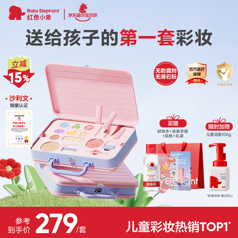 红色小象宇宙奇趣儿童化妆品彩妆礼盒套装无毒口红眼影女孩专用生日礼物