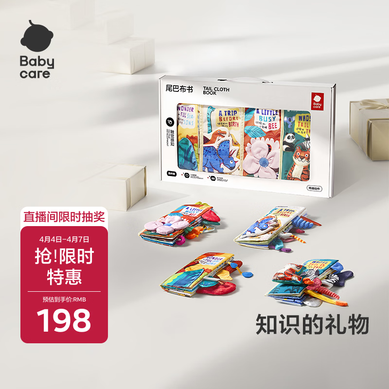 babycare宝宝尾巴布书早教婴儿认知玩具撕不烂生日礼物-4本节日礼盒装