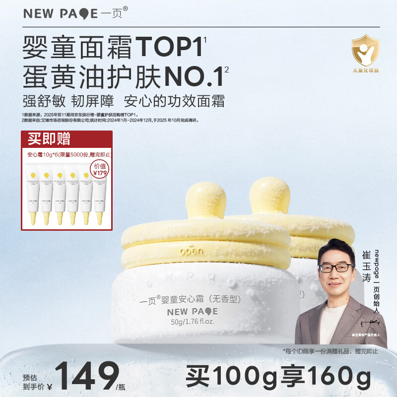一页儿童面霜宝宝安心霜蛋黄油面霜婴儿专用儿童滋润保湿润肤乳50g*2