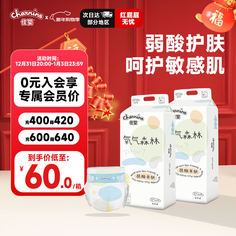 佳婴氧气森林纸尿裤L码80片(9-14KG)超薄婴儿尿不湿男女宝宝通用