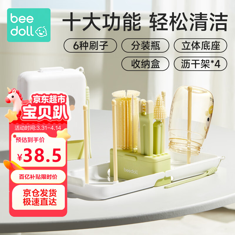 beedoll蓓兜奶瓶刷便携婴儿奶瓶清洗吸管刷奶嘴刷杯刷沥水架套装-皓月白