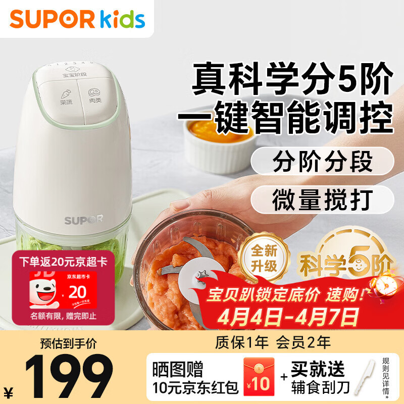 苏泊尔(SUPOR)分月龄辅食机 宝宝辅食工具多功能 辅食料理机 8叶双杯双刀 FB16B
