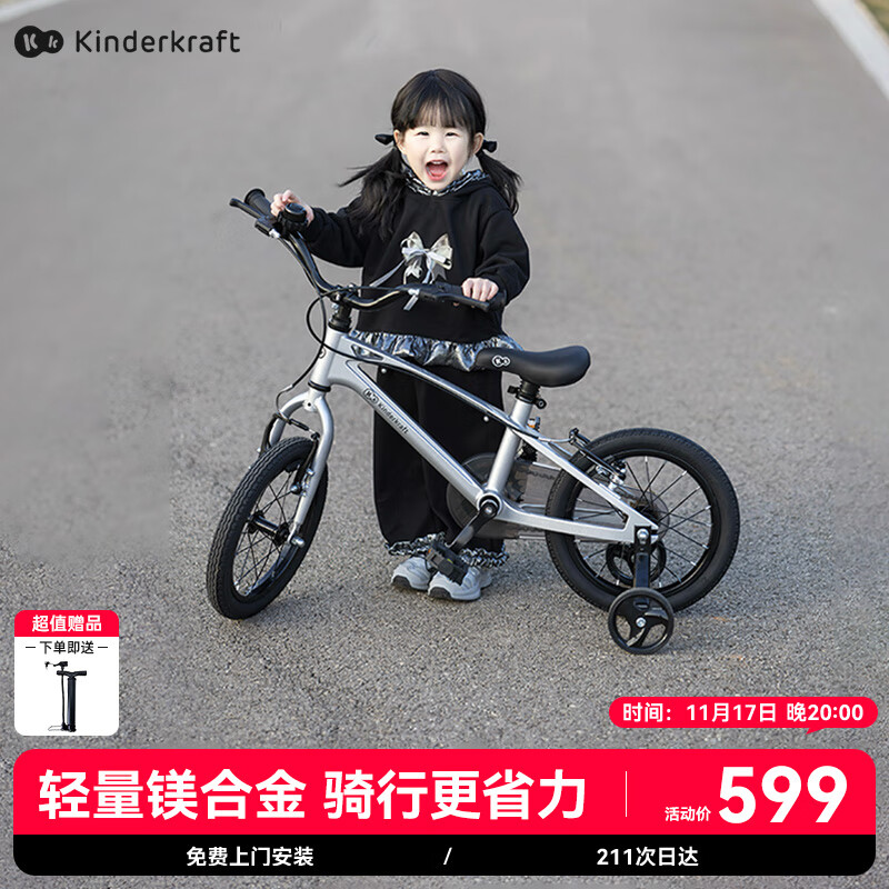 KinderKraftkk儿童自行车超轻4-6-12岁学生单车青少年男女孩礼物幻影14寸银