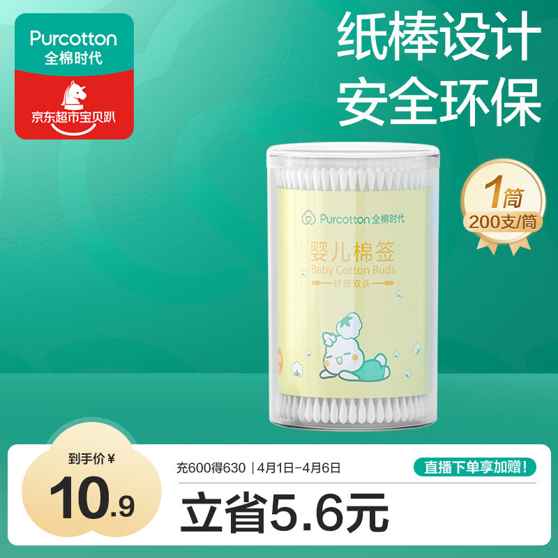 全棉时代婴儿棉签护理掏耳棉签棉棒细轴棉棒耳孔清洁棉签肚脐200支/1筒