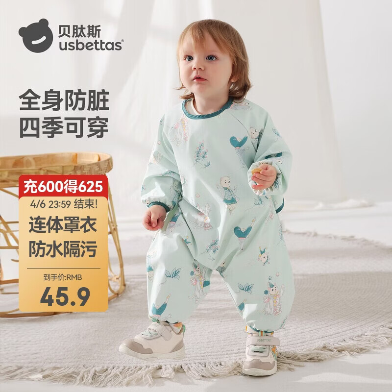 贝肽斯宝宝连体罩衣吃饭防水防脏婴儿爬行辅食围兜儿童围裙爬爬服 雪原