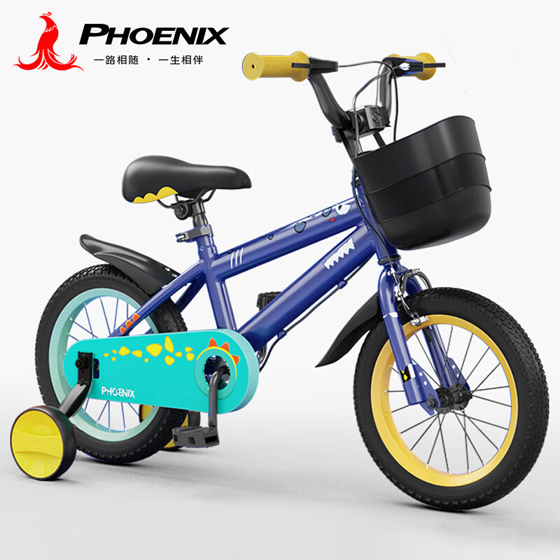 凤凰(Phoenix)儿童自行车男女孩3-6-8-12-15岁带辅助轮14寸蓝恐龙生日新年礼物