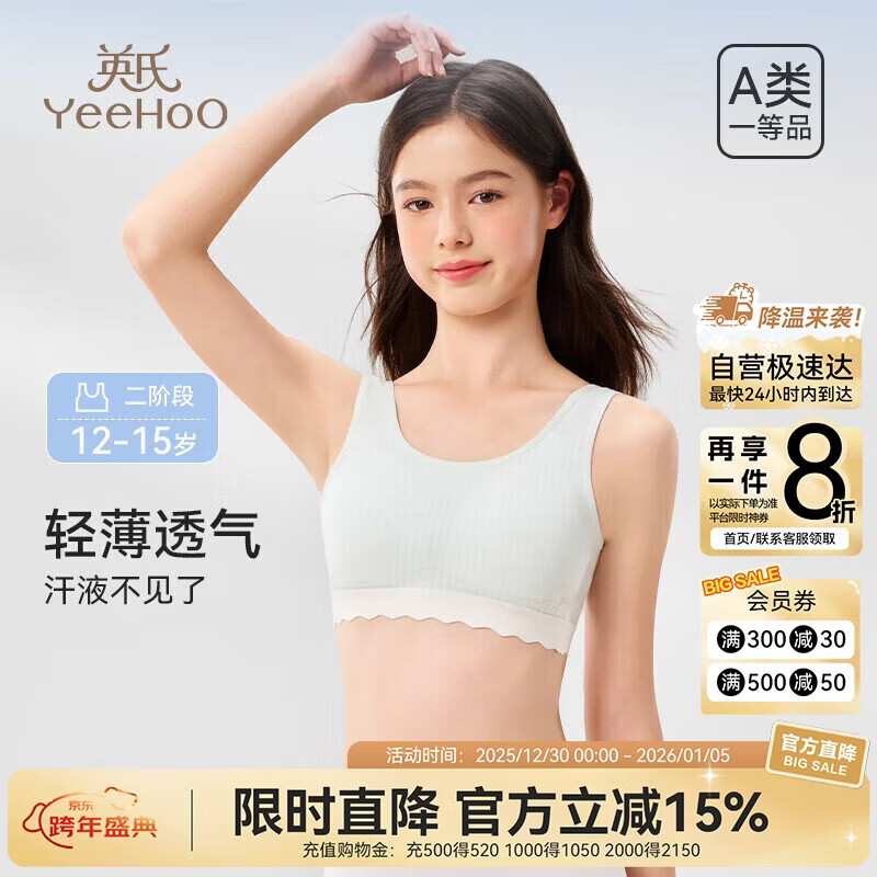 英氏(YEEHOO)7A抑菌春夏少女内衣发育二阶段12-15岁纯棉吸湿排汗女童学生文胸
