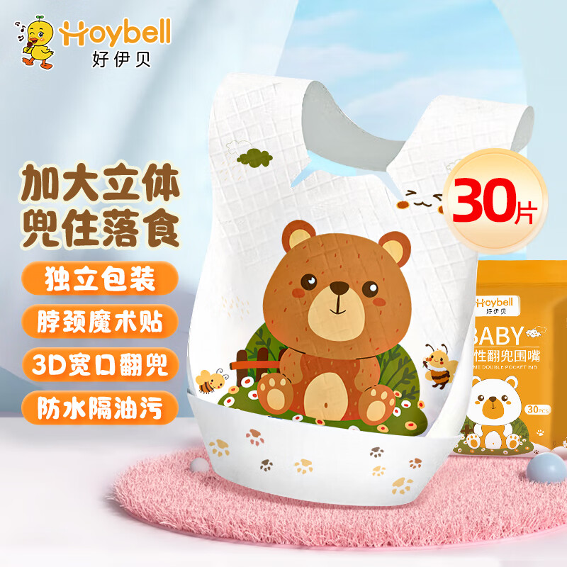 好伊贝(HOY BELL)婴儿一次性围兜30片 宝宝围嘴口水巾免洗饭兜独立包装