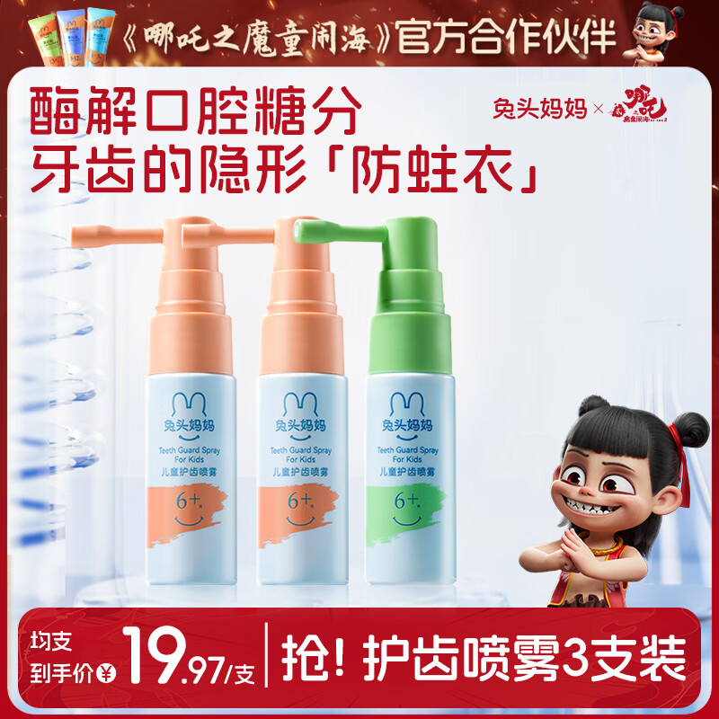 兔头妈妈儿童护齿口腔喷雾宝宝抑菌喷雾3支套装清新口气葡萄味+蜜瓜味不辣