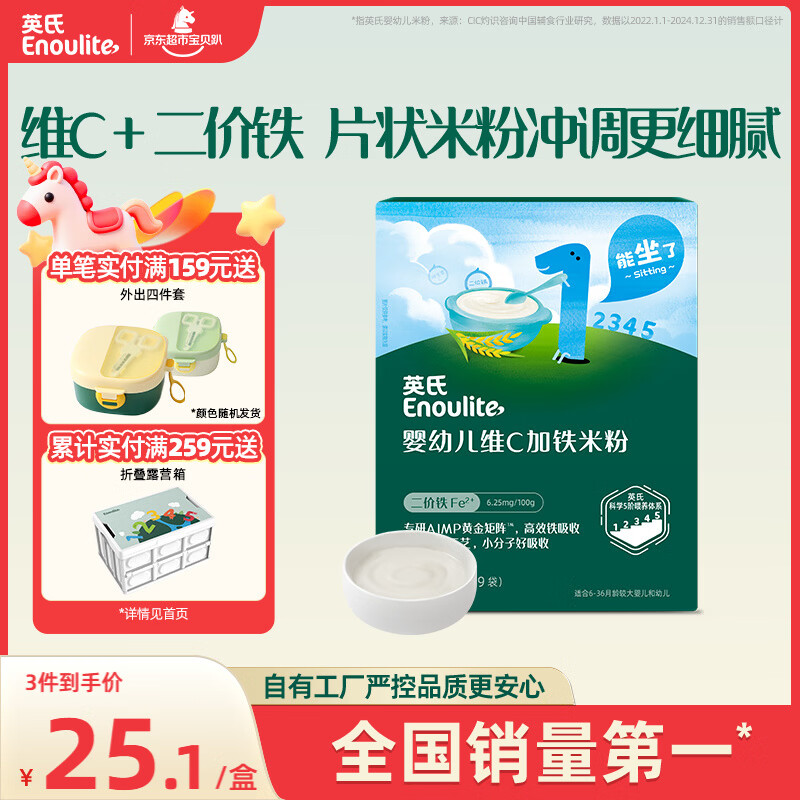 英氏婴幼儿米粉维C加铁营养米粉135g盒装宝宝辅食加铁婴儿米糊1阶6月+