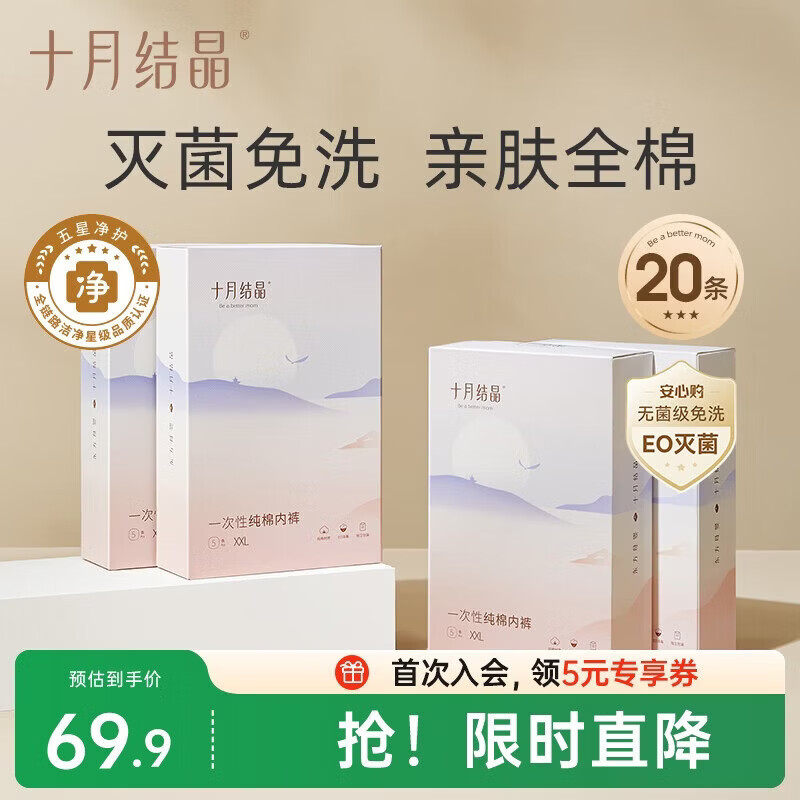 十月结晶女士纯棉一次性内裤出差旅行月子内裤20条XL