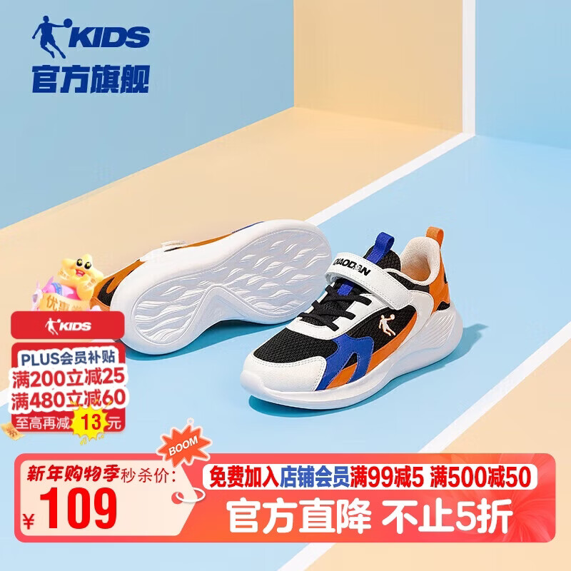 乔丹男大童跑步鞋儿童春秋季运动鞋子密网儿童鞋 黑色/乔丹白39