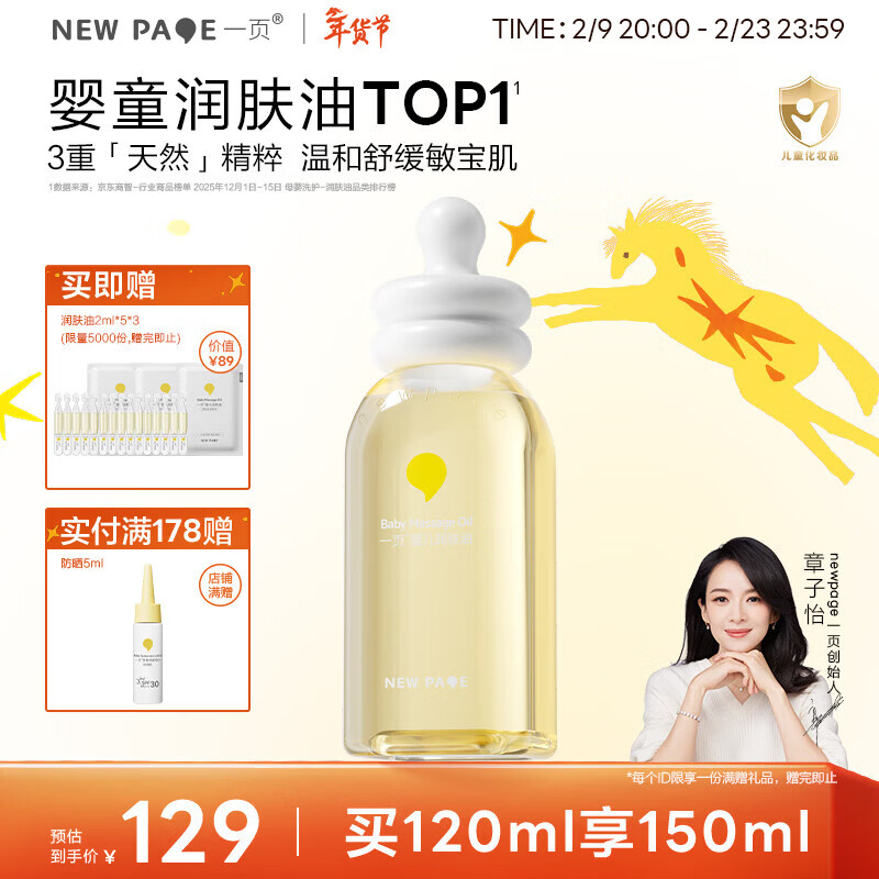 一页婴儿抚触油宝宝润肤油新生儿按摩油120ml易推开不油腻按摩全身