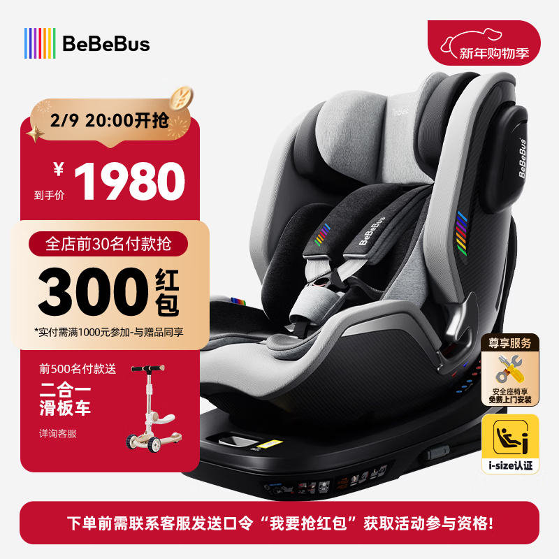 bebebus儿童安全座椅领航家汽车用0-8岁婴儿宝宝车载360度旋转 千岩灰