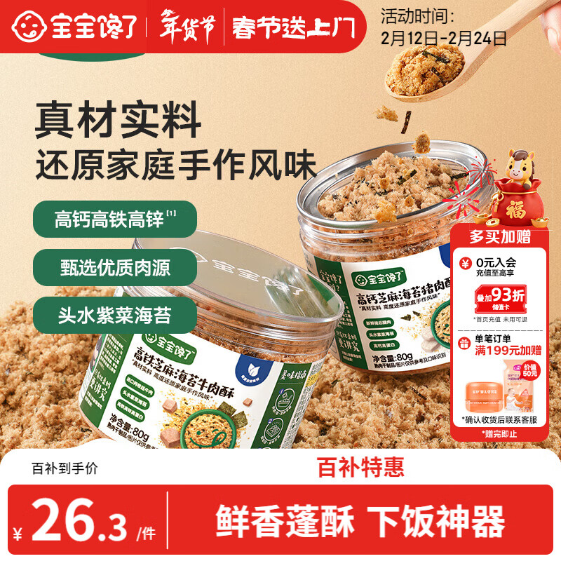宝宝馋了高钙芝麻海苔猪肉酥80g拌饭料儿童零食无添加味精享儿童辅食食谱