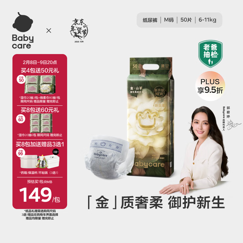 babycare金山茶花纸尿裤M50片(6-11kg)婴儿尿不湿超薄透气新生柔花苞裤