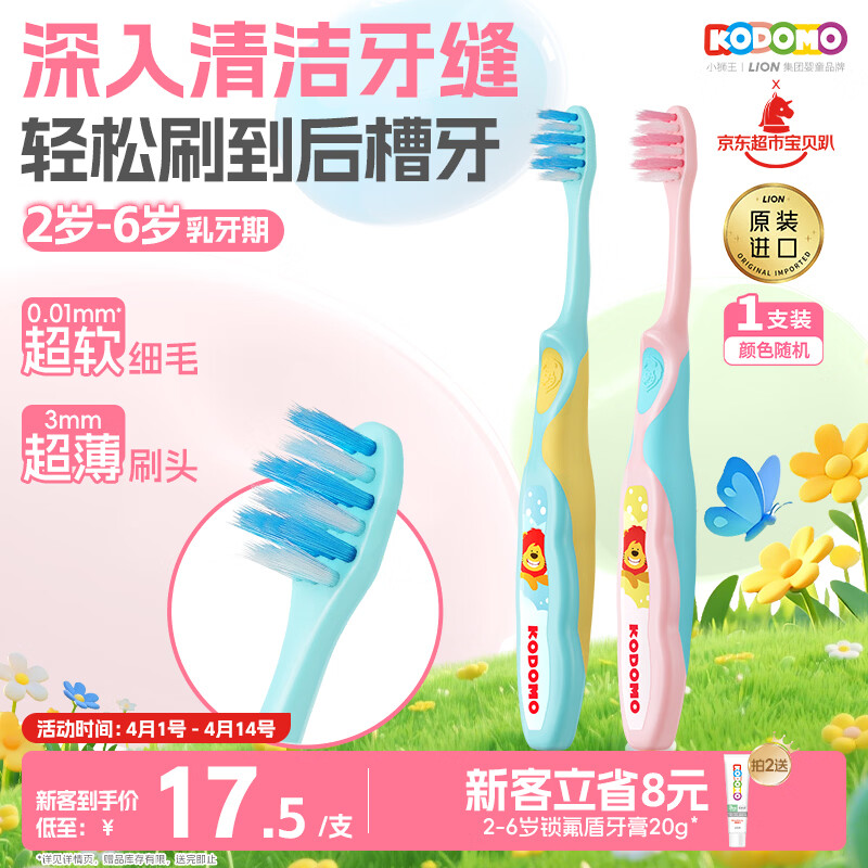 狮王(Lion)小狮王儿童牙刷2-3-6岁 进口宝宝软毛牙刷幼儿颜色随机热门商品