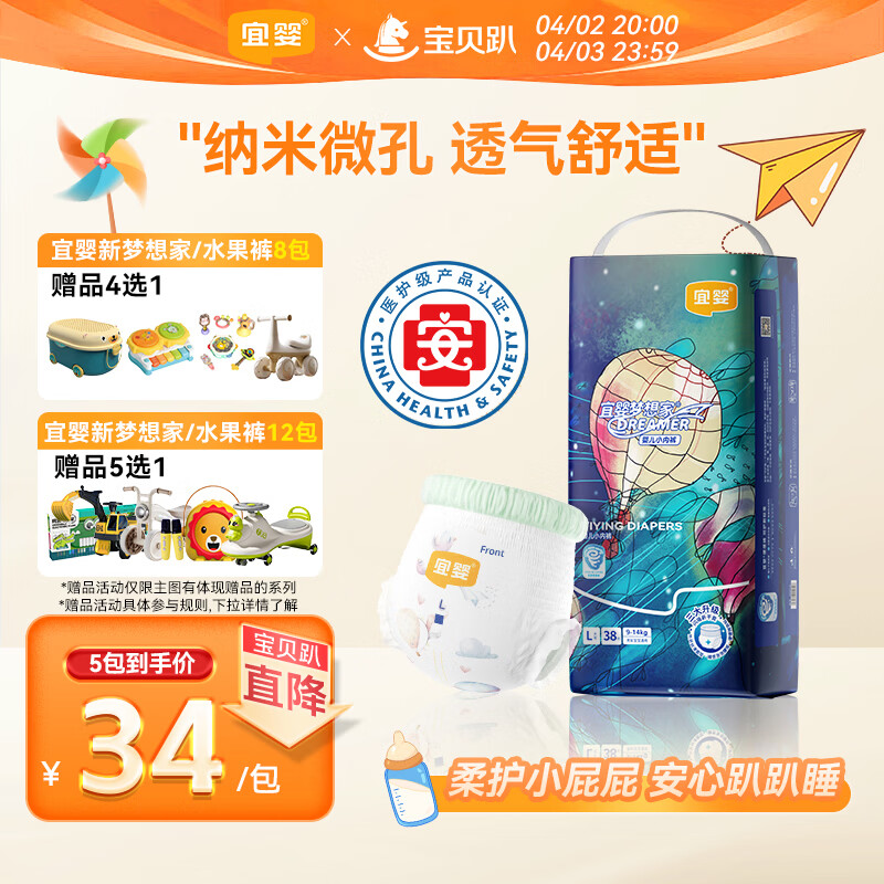 宜婴新梦想家全包臀小内裤L38片拉拉裤超薄透气【品牌直供 安心品质】