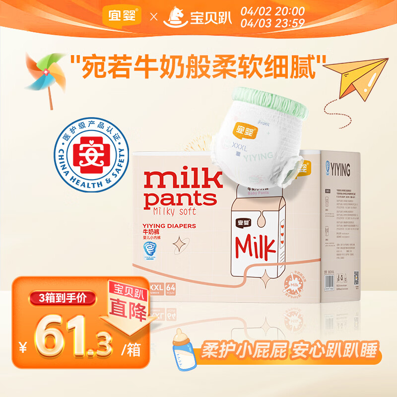 宜婴牛奶小内裤超薄透气拉拉裤宝宝柔软尿不湿XXXL64片【16-18kg】