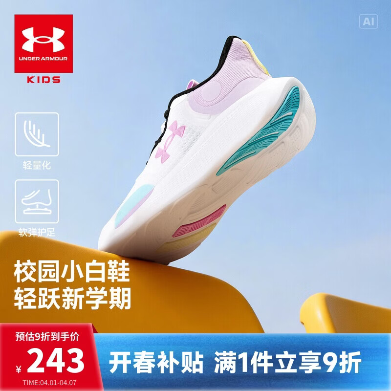 安德玛(Under Armour)男女大童网面透气高弹防滑束带体考跑步鞋2511104 浅紫 37.5