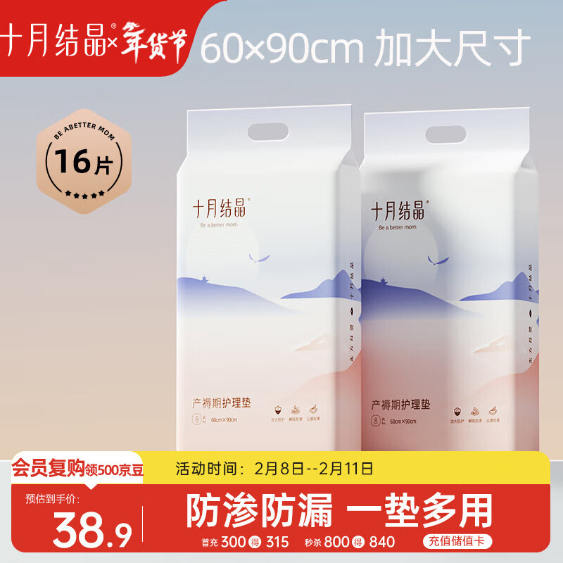 十月结晶一次性孕产妇产后护理垫产妇褥一次性床单8片*2包(60*90cm)