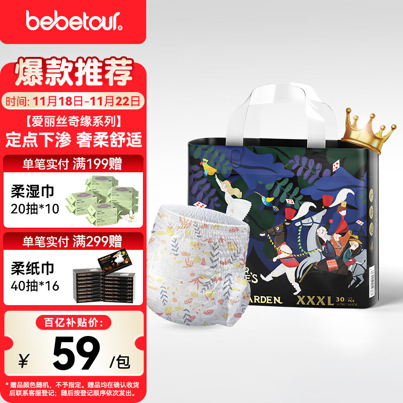 bebetour爱丽丝奇缘拉拉裤3XL30片(17kg以上)夜用尿不湿奢柔舒适定点下渗