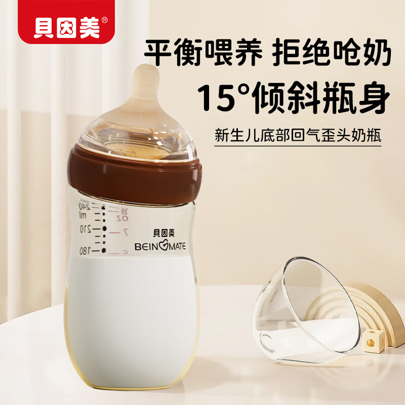 贝因美婴儿防胀气奶瓶宝宝仿母乳宽口径断奶奶嘴PPSU防摔防呛0-6-12个月