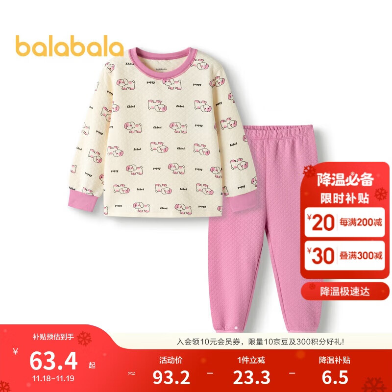 巴拉巴拉宝宝睡衣套装冬季三层夹棉男女童家居服小童外出保暖208424171206