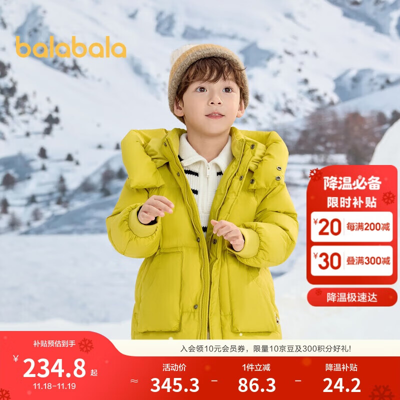 巴拉巴拉儿童羽绒服中长款连帽男童女童冬装2024外套保暖童装208424107242