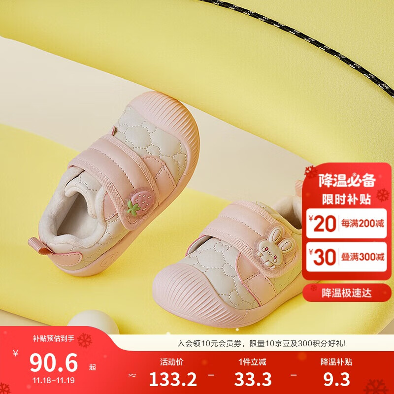 巴拉巴拉学步鞋婴儿鞋男童女童2024新款秋冬宝宝加绒鞋子防滑208424144204