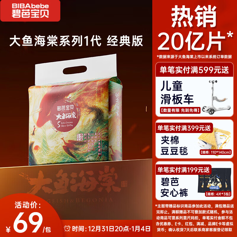 碧芭宝贝大鱼海棠纸尿裤XL32片(12-17kg)尿不湿 干爽透气大吸量 秋冬不闷