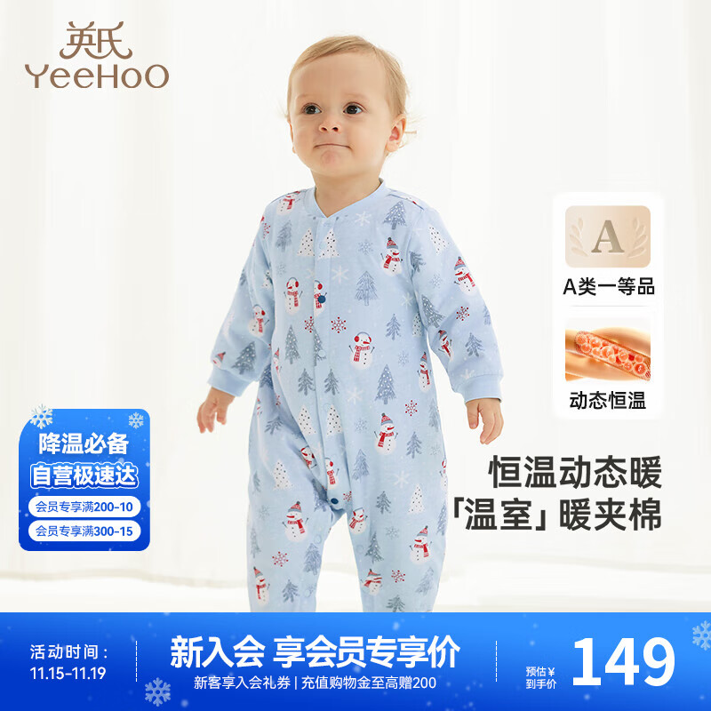 英氏(YEEHOO)夹棉连体衣动态恒温婴儿衣服秋冬保暖新生儿衣服精梳棉宝宝爬服