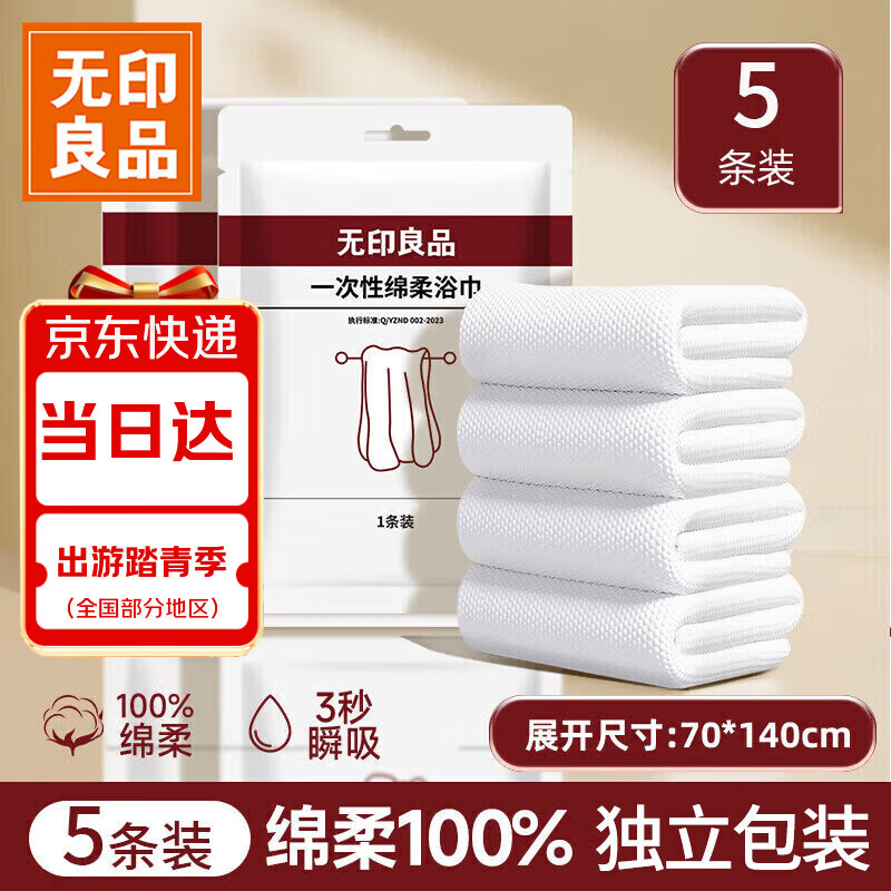 无印良品一次性浴巾儿童加大加厚独立装强吸水酒店旅游必备70*140cm 5条装