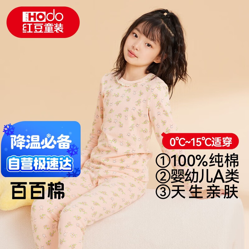 红豆儿童纯棉内衣套装男女童秋衣秋裤秋冬保暖低领棉毛衫M1170裸粉120