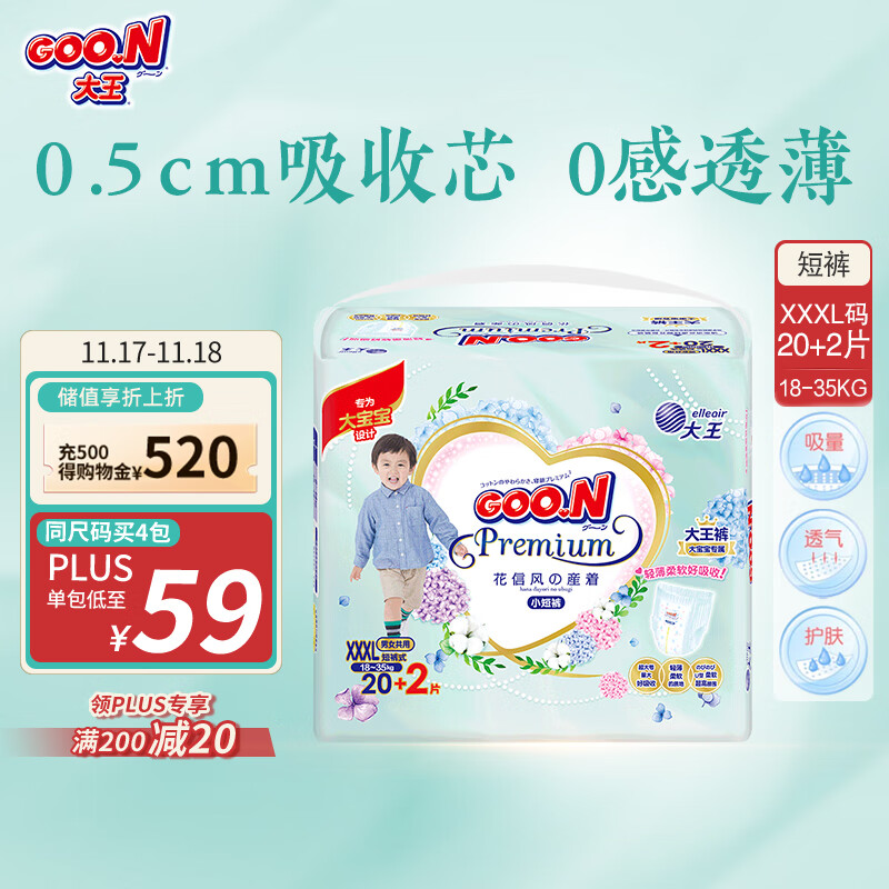大王【品牌直供】花信风拉拉裤XXXL22片(18-35kg)婴儿超薄透气