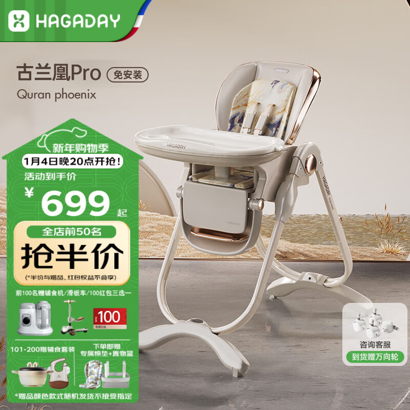 哈卡达宝宝餐椅多功能餐桌婴儿学坐椅儿童家用可坐可躺折叠免安装古兰凰