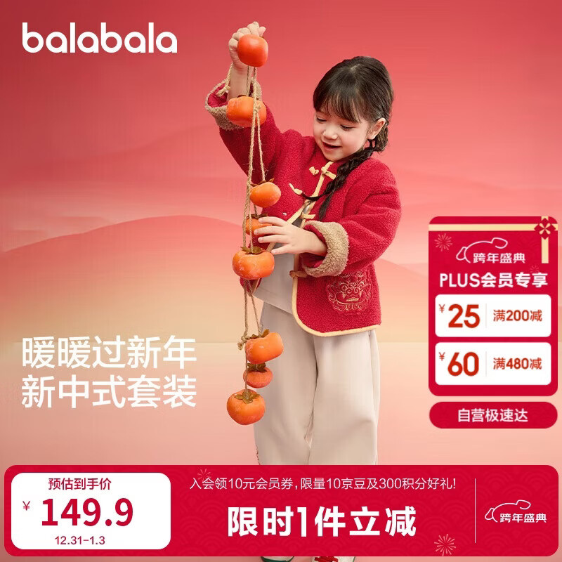 巴拉巴拉童装儿童套装男童女童长袖春秋季2025宝宝加绒拜年服208125104201