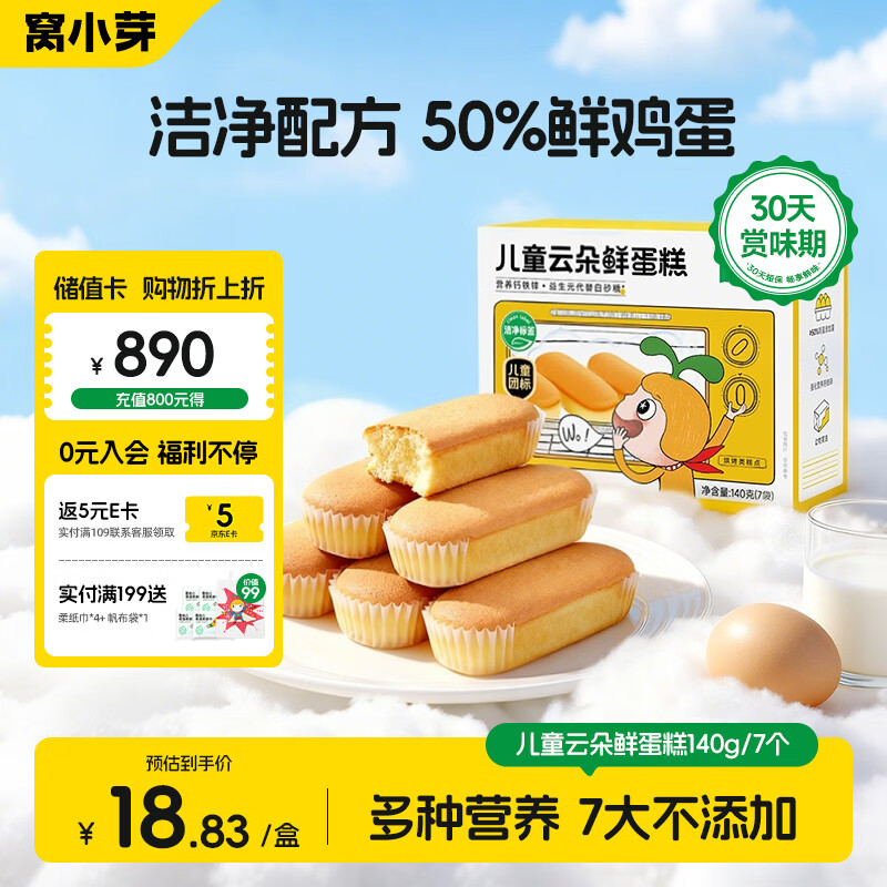 窝小芽云朵鲜蛋糕 儿童早餐面包零食儿童蛋糕无添加防腐剂140g/7个