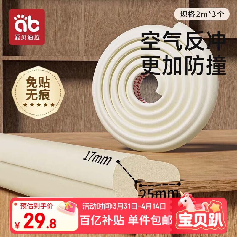 爱贝迪拉(AIBEDILA)婴儿防撞条婴幼儿防磕碰防护条免贴胶加宽加厚L型米色6米
