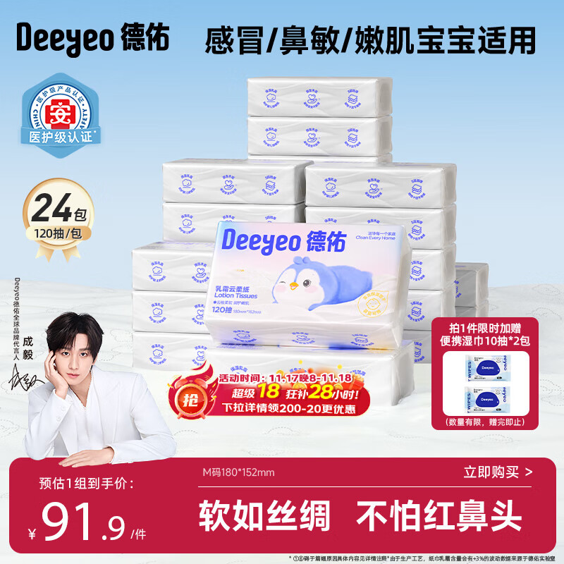 德佑婴儿云柔巾保湿纸巾乳霜纸120抽24包儿童超柔抽纸M码