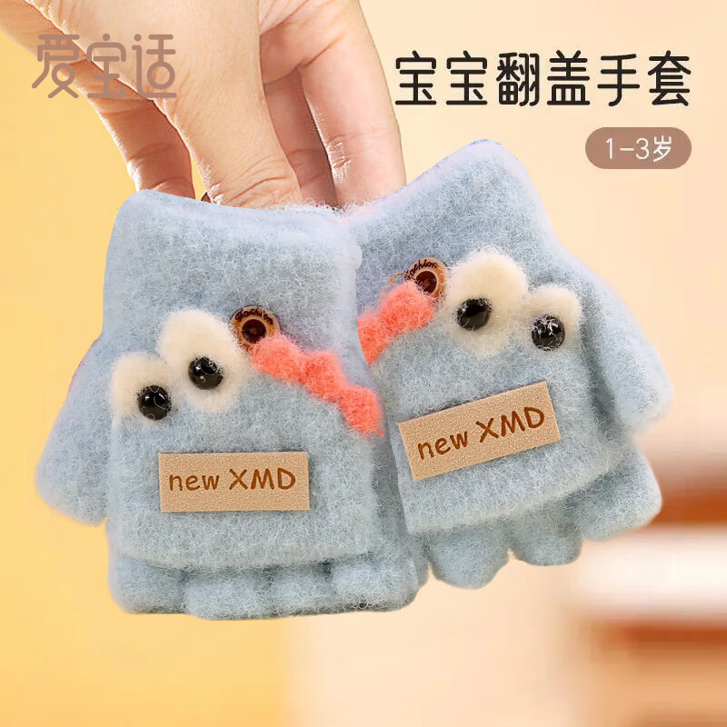 爱宝适婴儿手套秋冬保暖男女宝宝翻盖半指手套儿童加绒手套蓝色2260