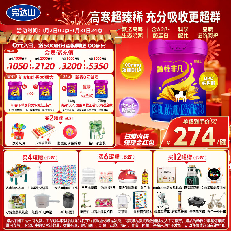完达山新国标菁稚非凡A2-酪蛋白幼儿配方奶粉3段750克(1-3岁适用)